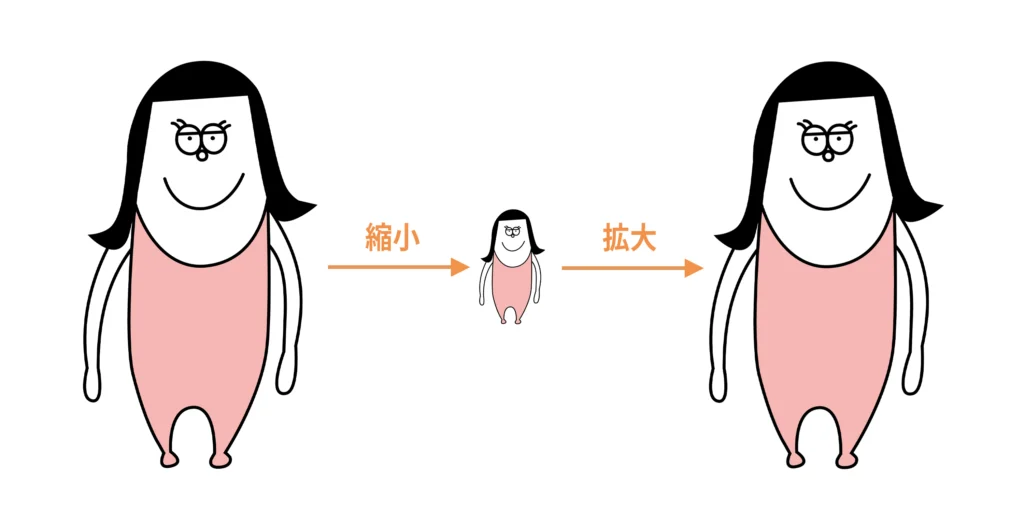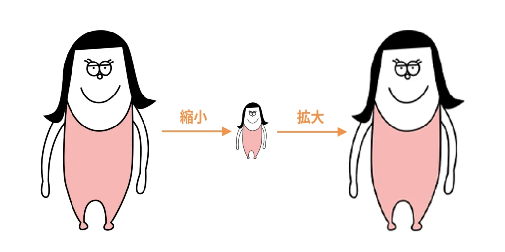 スマートオブジェクトは、一度縮小してからまた拡大しても、画像が劣化することがありません。